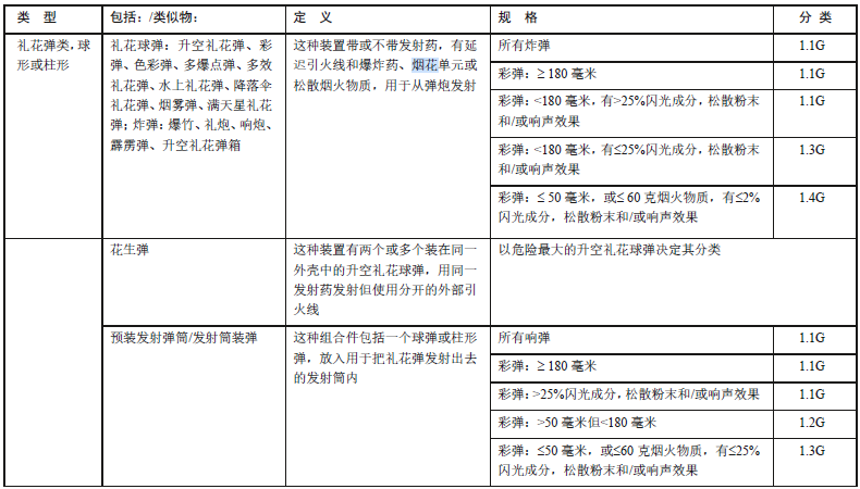 烟花通常根据试验系列6 得出的试验数据,划入1.1 项、1.2 项、1.3 项和1.4 项等危险项别。
