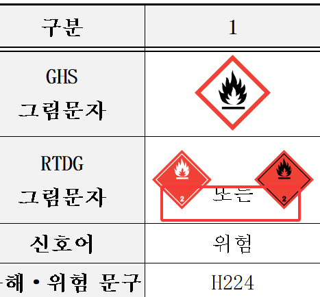 주석 1: 성분이 피부 부식성(1군) 및 심각한 눈 손상(1군)으로 모두 분류된 경우, 농도는 한 번만 계산합니다.