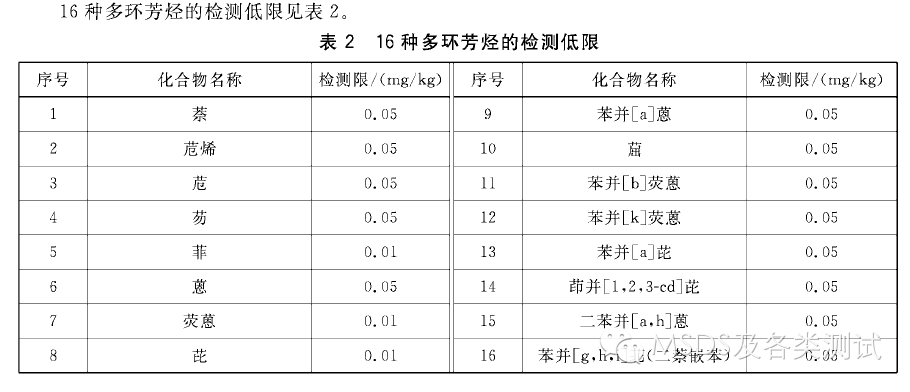 SN/T 1877.3中规定了矿物油中多环芳烃的气相色谱-质谱、高效液相色谱和气相色谱测定的方法。